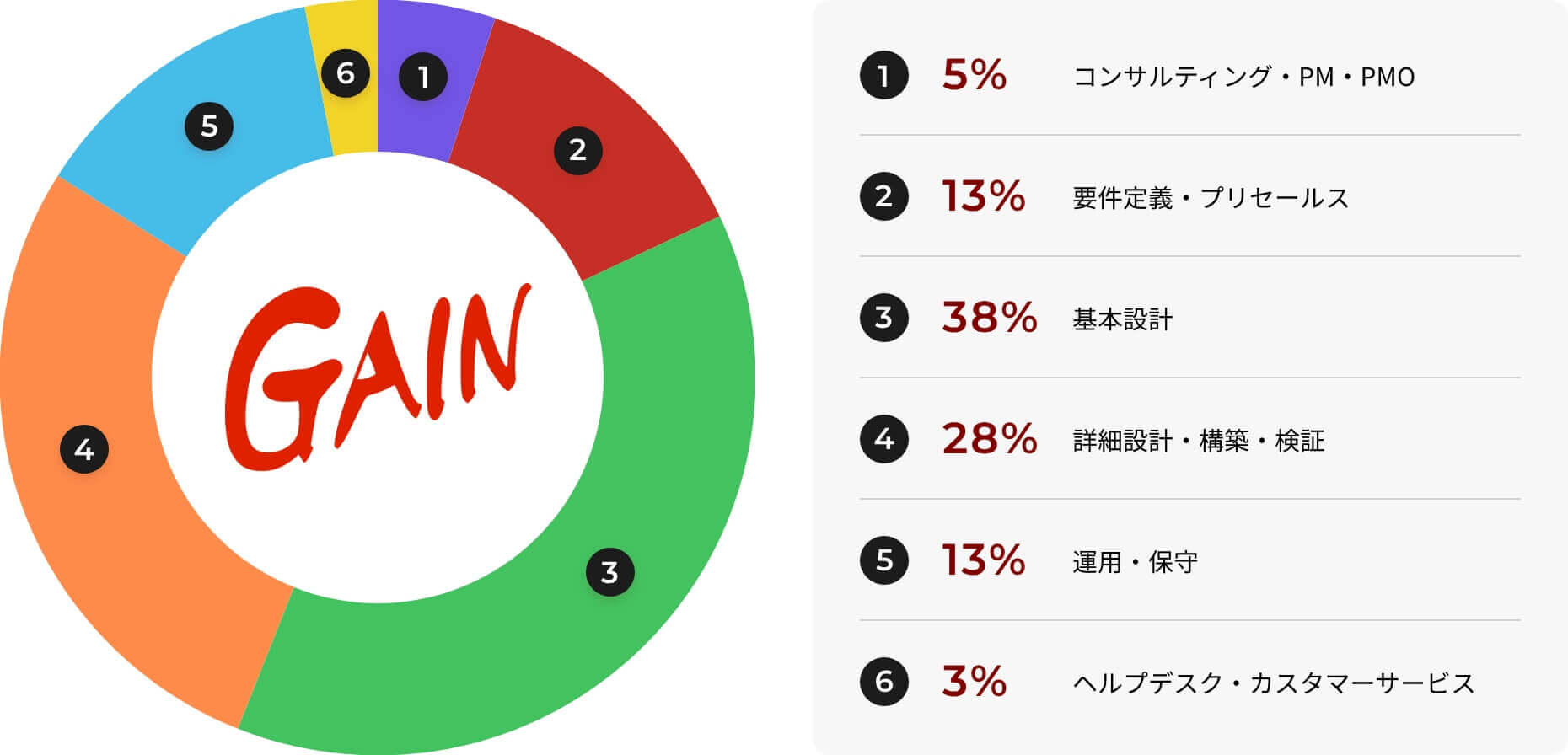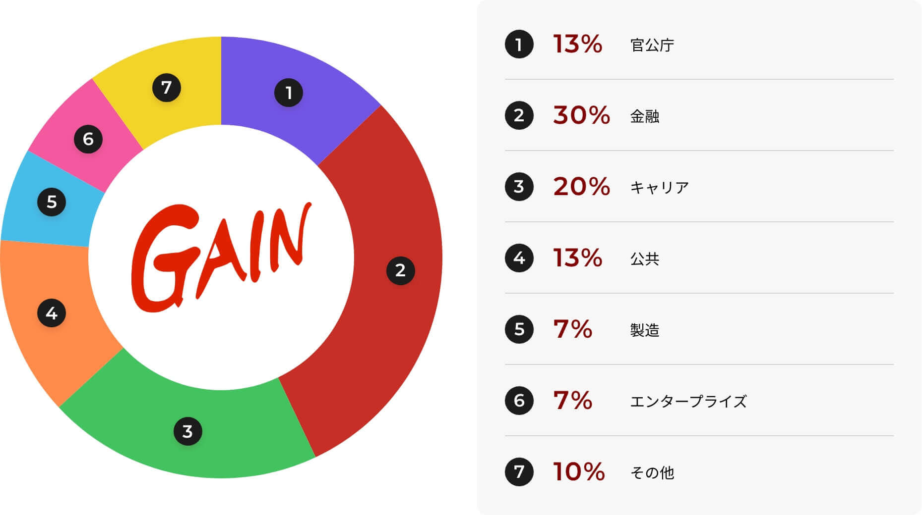 インターネット・WEB業界、通信業界、ソフトウェア業界、ハードウェア業界、情報処理サービス(SI)業界、全てITに必要な業界となります。我々ゲイングループは5つの業界すべてに対し、ITインフラ技術サービスを支援する企業となります。
