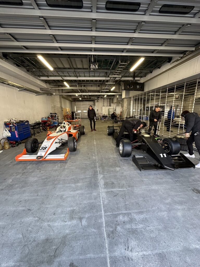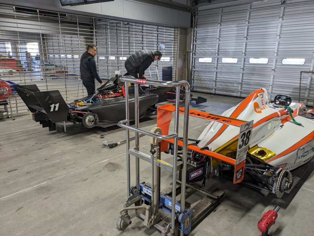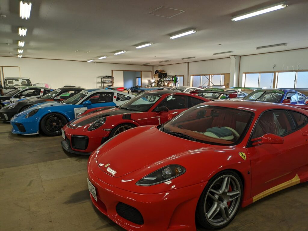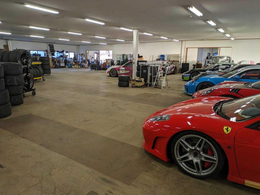 この日の走行終了後は、フォーミュラカーをメンテナンスしていただいているチームのガレージを見学させていただきました。ポルシェのレースカーがいっぱいありました。 今回は筆者が緊張のため、あまり撮影が出来ませんでしたが、次回は、もっといろんな撮影をして来たいと思います。