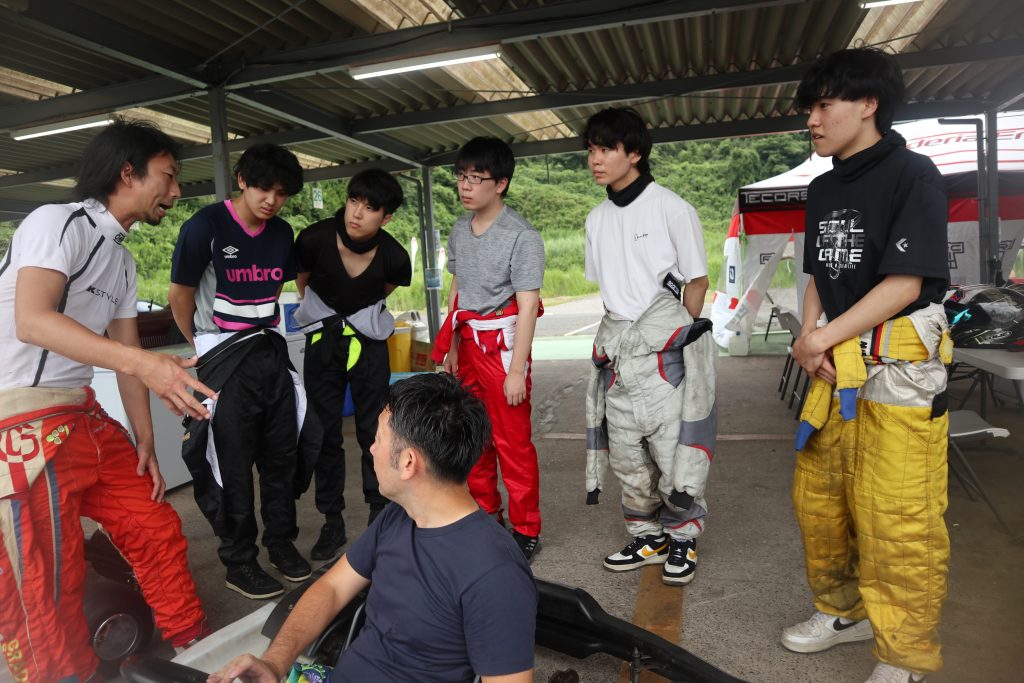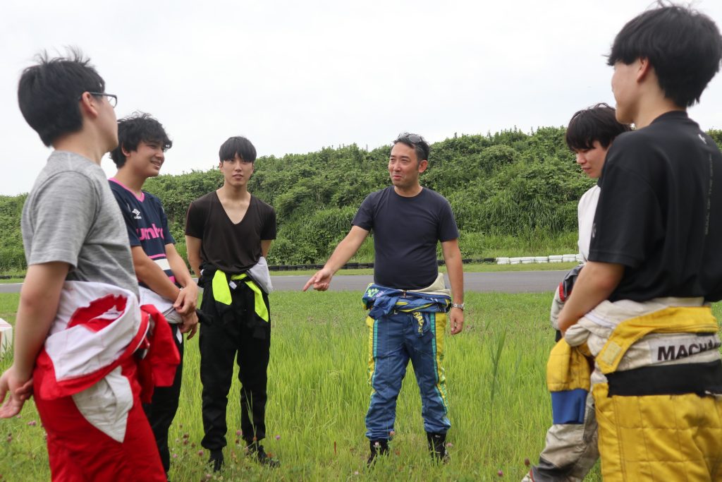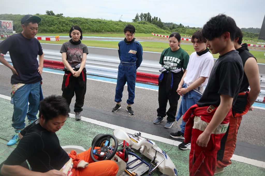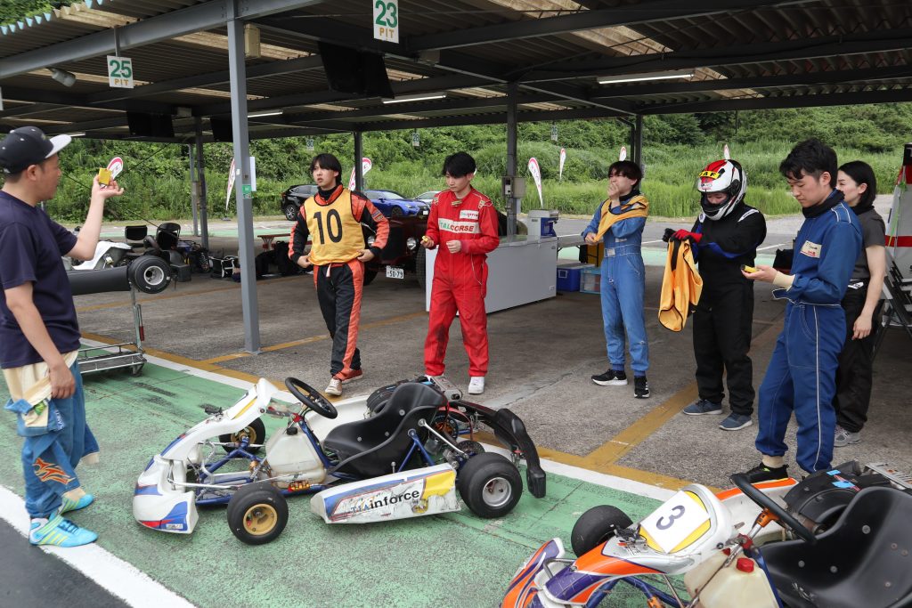 3チームに分かれ、まずは、経験者である社員がカートの乗り方や走り方を丁寧にレクチャー。