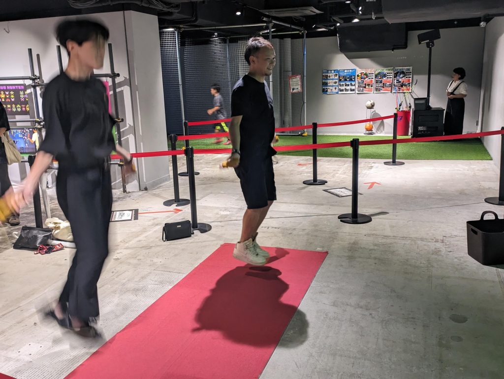 縄跳びをすると画面上のキャラクターが走って、先にゴールした方が勝ちのアトラクション。体力的に結構しんどい。