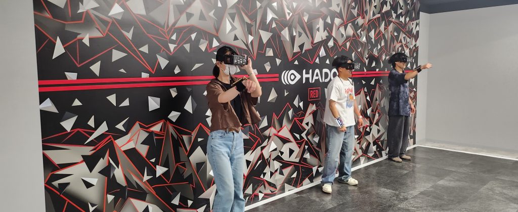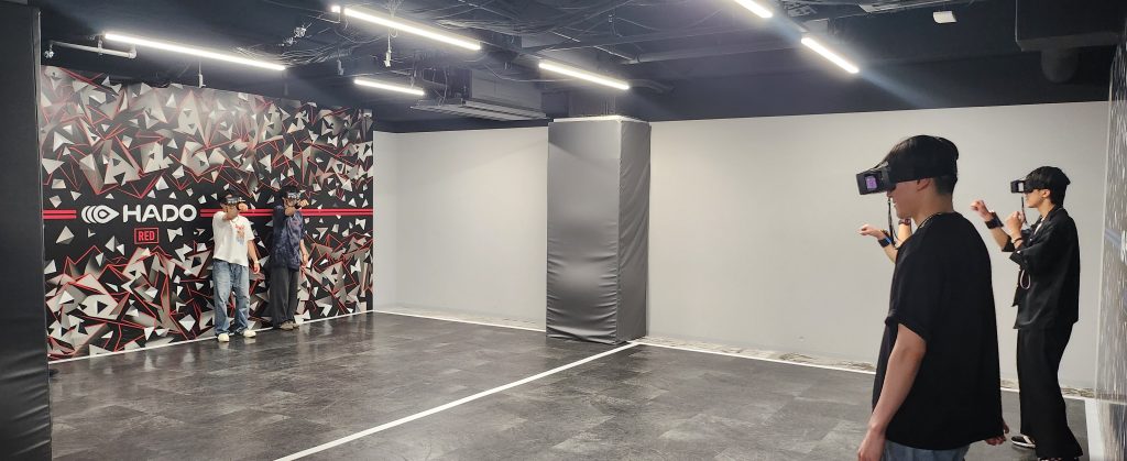 VRゴーグルをつけて、2チームに分かれて、戦うアトラクションです、外から見ると何やっているかわかりませんが。