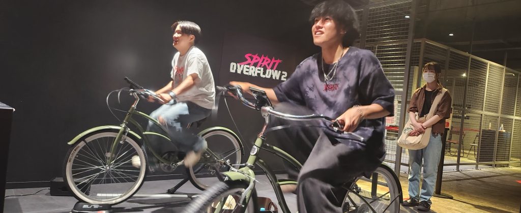 画面上の自転車のキャラクターを操作し、円を描くことで陣地を取り合うアトラクション。